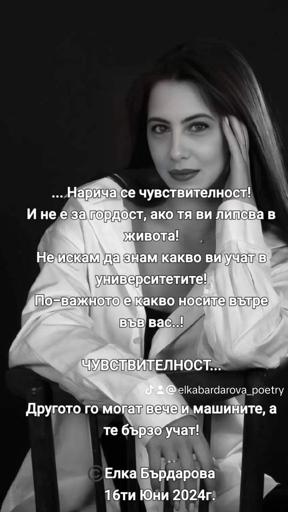 Вече съм на възраст, в която трудно допускам поучаване, размахване на пръст срещу мен, опити да ми се наложи чужда гледка точка, чужда истина и всякакви опити да ми влияе така модерният социално медиен хейт… Вече съм на такава възраст, че предпочитам да живея живота си по свои правила… Научила съм се рязко да затварям врати… Да намирам в тишината и усамотението смисъл… Да слушам себе си… Да следвам Душата си… Да се радвам и на мъничкото, което всеки следващ ден ми дава… Вече съм на една такава възраст, която е колкото много, толкова и малко, за да направи човек всичко, което е желал и желае… Но аз не спирам… Забавям понякога… Събирам се понякога… Но всяка сутрин отварям очите си с нова надежда… С вяра в себе си… И слушам птичата песен сутрин рано, докато си пия кафето… Вече съм на една такава възраст, в която умея да забравям избирателно… Но и да пазя ревностно всичко скъпо за мен…