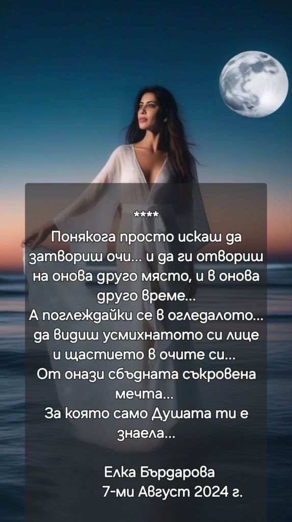 Вече съм на възраст, в която трудно допускам поучаване, размахване на пръст срещу мен, опити да ми се наложи чужда гледка точка, чужда истина и всякакви опити да ми влияе така модерният социално медиен хейт… Вече съм на такава възраст, че предпочитам да живея живота си по свои правила… Научила съм се рязко да затварям врати… Да намирам в тишината и усамотението смисъл… Да слушам себе си… Да следвам Душата си… Да се радвам и на мъничкото, което всеки следващ ден ми дава… Вече съм на една такава възраст, която е колкото много, толкова и малко, за да направи човек всичко, което е желал и желае… Но аз не спирам… Забавям понякога… Събирам се понякога… Но всяка сутрин отварям очите си с нова надежда… С вяра в себе си… И слушам птичата песен сутрин рано, докато си пия кафето… Вече съм на една такава възраст, в която умея да забравям избирателно… Но и да пазя ревностно всичко скъпо за мен…
